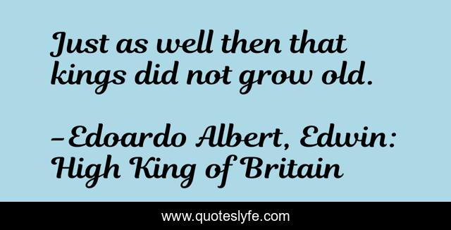 This page presents the quote "Just as well then that kings did not grow old.". Author of this quote is Edoardo Albert, Edwin: High King of Britain. This quote is about kings, life, death, danger,.