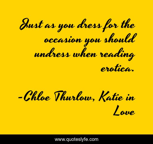 This page presents the quote "Just as you dress for the occasion you should undress when reading erotica.". Author of this quote is Chloe Thurlow, Katie in Love. This quote is about reading-erotica, erotica,.