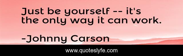 This page presents the quote "Just be yourself -- it's the only way it can work.". Author of this quote is Johnny Carson. This quote is about enthusiasm, inspirational, self-esteem,.