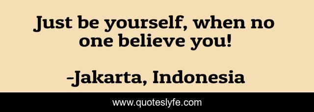 "Jakarta, Indonesia Quotes." Quoteslyfe.com, 2025. Fri. 05 Dec. 2025. <https://www.quoteslyfe.com/quote/Just-be-yourself-when-no-one-believe-106118>.