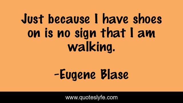 This page presents the quote "Just because I have shoes on is no sign that I am walking.". Author of this quote is Eugene Blase. .