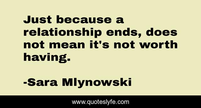 This page presents the quote "Just because a relationship ends, does not mean it's not worth having.". Author of this quote is Sara Mlynowski. This quote is about romance, gimmeacall, love, relationship, affection,.
