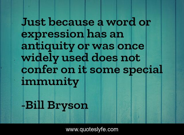 This page presents the quote "Just because a word or expression has an antiquity or was once widely used does not confer on it some special immunity". Author of this quote is Bill Bryson. This quote is about political-correctness, language,.