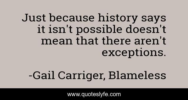 This page presents the quote "Just because history says it isn't possible doesn't mean that there aren't exceptions.". Author of this quote is Gail Carriger, Blameless. This quote is about exceptions, alexia-tarabotti, history,.