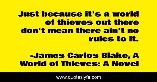 This page presents the quote "Just because it's a world of thieves out there don't mean there ain't no rules to it.". Author of this quote is James Carlos Blake, A World of Thieves: A Novel. .