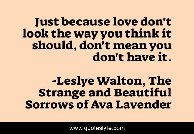 "Leslye Walton, The Strange and Beautiful Sorrows of Ava Lavender Quotes." Quoteslyfe.com, 2025. Sat. 06 Dec. 2025. <https://www.quoteslyfe.com/quote/Just-because-love-don-t-look-the-906>.