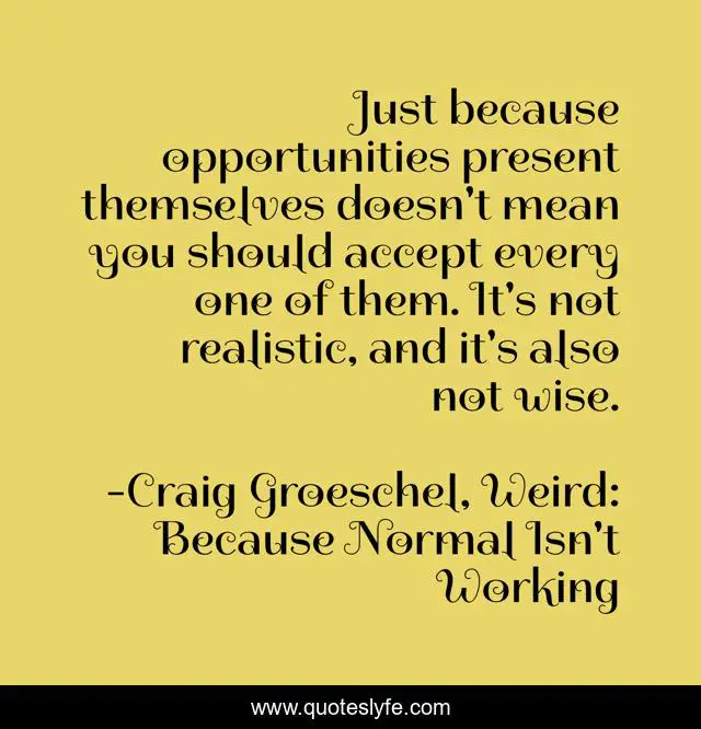 "Craig Groeschel, Weird: Because Normal Isn't Working Quotes." Quoteslyfe.com, 2025. Sun. 07 Dec. 2025. <https://www.quoteslyfe.com/quote/Just-because-opportunities-present-themselves-doesn-t-203211>.