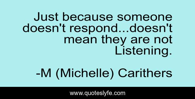 This page presents the quote "Just because someone doesn't respond...doesn't mean they are not Listening.". Author of this quote is M (Michelle) Carithers. .