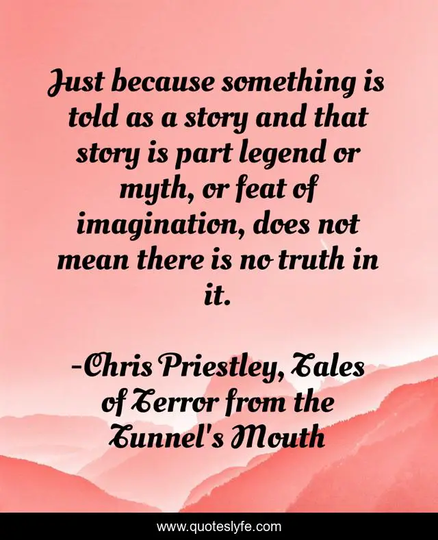 This page presents the quote "Just because something is told as a story and that story is part legend or myth, or feat of imagination, does not mean there is no truth in it.". Author of this quote is Chris Priestley, Tales of Terror from the Tunnel's Mouth. .