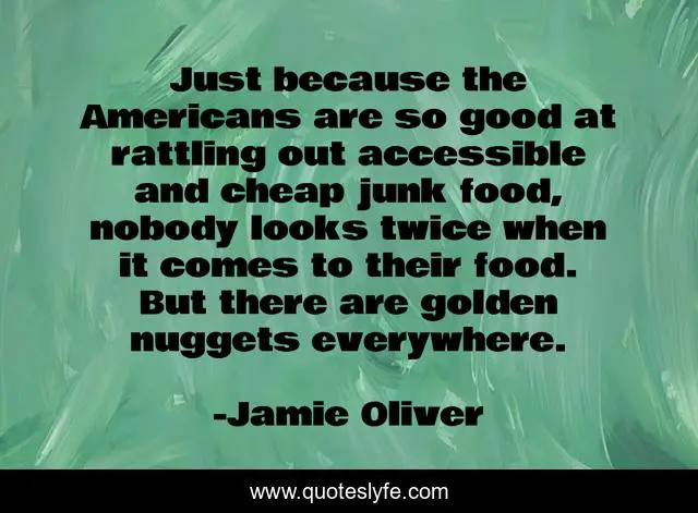 This page presents the quote "Just because the Americans are so good at rattling out accessible and cheap junk food, nobody looks twice when it comes to their food. But there are golden nuggets everywhere.". Author of this quote is Jamie Oliver. This quote is about good, just because,.