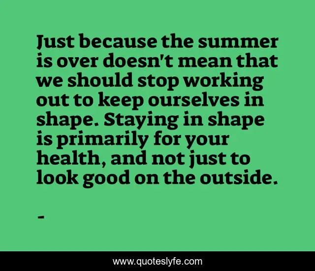 This page presents the quote "Just because the summer is over doesn't mean that we should stop working out to keep ourselves in shape. Staying in shape is primarily for your health, and not just to look good on the outside.". Author of this quote is . This quote is about edmond-mbiaka, working-out, staying-in-shape, working-out-for-your-health, taking-care-of-your-health,.