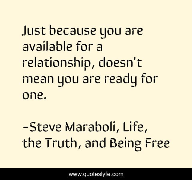 This page presents the quote "Just because you are available for a relationship, doesn't mean you are ready for one.". Author of this quote is Steve Maraboli, Life, the Truth, and Being Free. This quote is about love, relationship, affection,.