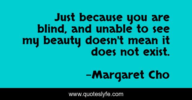 This page presents the quote "Just because you are blind, and unable to see my beauty doesn't mean it does not exist.". Author of this quote is Margaret Cho. This quote is about blindness, beauty,.
