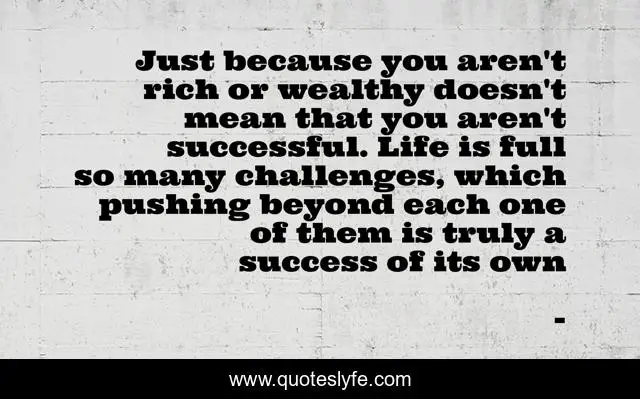 Just because you aren't rich or wealthy doesn't mean that you aren't successful. Life is full so many challenges, which pushing beyond each one of them is truly a success of its own