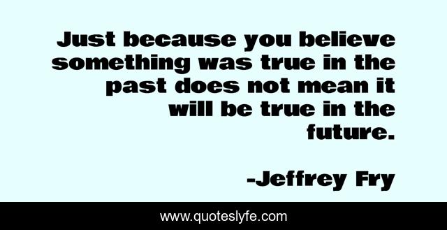 This page presents the quote "Just because you believe something was true in the past does not mean it will be true in the future.". Author of this quote is Jeffrey Fry. This quote is about because, believe, will-be, something, mean, in-the-future, does-not, true, in-the-past,.