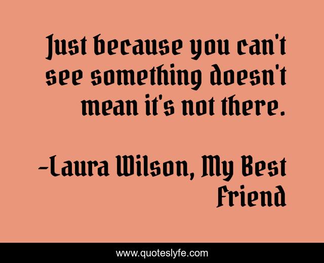 This page presents the quote "Just because you can't see something doesn't mean it's not there.". Author of this quote is Laura Wilson, My Best Friend. .