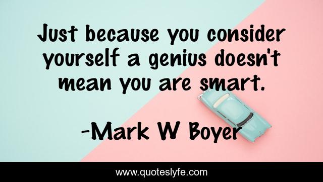 "Mark W Boyer Quotes." Quoteslyfe.com, 2025. Sat. 06 Dec. 2025. <https://www.quoteslyfe.com/quote/Just-because-you-consider-yourself-a-genius-68230>.