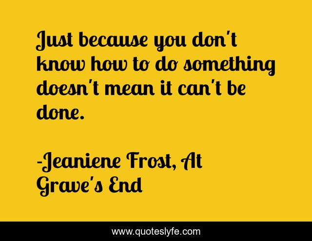 This page presents the quote "Just because you don't know how to do something doesn't mean it can't be done.". Author of this quote is Jeaniene Frost, At Grave's End. This quote is about mencheres, vampires,.
