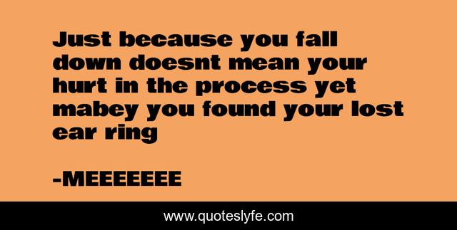 This page presents the quote "Just because you fall down doesnt mean your hurt in the process yet mabey you found your lost ear ring". Author of this quote is MEEEEEEE. This quote is about awesome, hurt, falling, sad,.