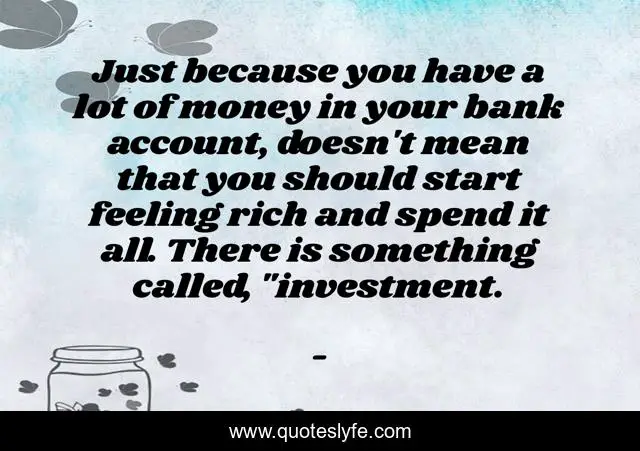 This page presents the quote "Just because you have a lot of money in your bank account, doesn't mean that you should start feeling rich and spend it all. There is something called, "investment.". Author of this quote is . This quote is about edmond-mbiaka, investing-your-money, feeling-rich, bank-account, investment,.