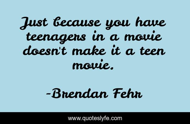 This page presents the quote "Just because you have teenagers in a movie doesn't make it a teen movie.". Author of this quote is Brendan Fehr. This quote is about teenagers, just because,.
