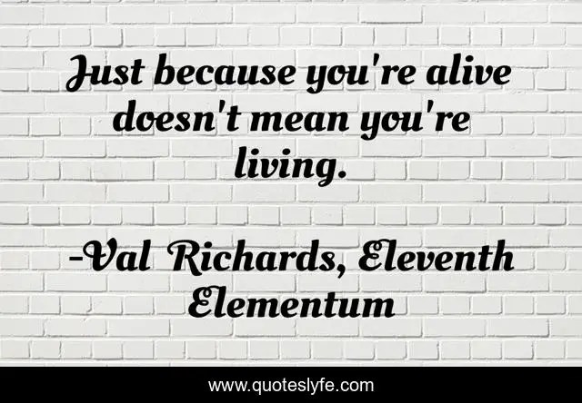 "Val Richards, Eleventh Elementum Quotes." Quoteslyfe.com, 2025. Fri. 05 Dec. 2025. <https://www.quoteslyfe.com/quote/Just-because-you-re-alive-doesn-t-253700>.