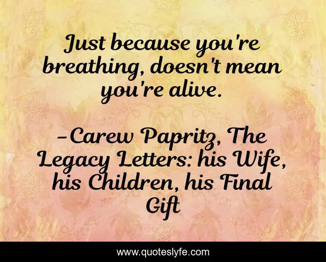 "Carew Papritz, The Legacy Letters: his Wife, his Children, his Final Gift Quotes." Quoteslyfe.com, 2025. Fri. 05 Dec. 2025. <https://www.quoteslyfe.com/quote/Just-because-you-re-breathing-doesn-t-187864>.