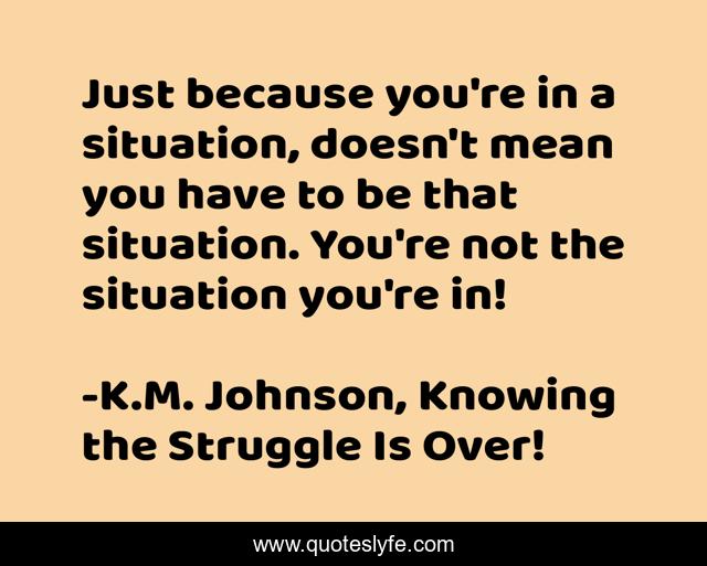 "K.M. Johnson, Knowing the Struggle Is Over! Quotes." Quoteslyfe.com, 2025. Sat. 06 Dec. 2025. <https://www.quoteslyfe.com/quote/Just-because-you-re-in-a-situation-12590>.