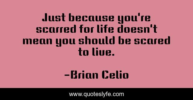 This page presents the quote "Just because you're scarred for life doesn't mean you should be scared to live.". Author of this quote is Brian Celio. This quote is about life, scarred, live, scared,.