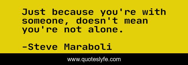 This page presents the quote "Just because you're with someone, doesn't mean you're not alone.". Author of this quote is Steve Maraboli. This quote is about alone, relationships, love, affection,.
