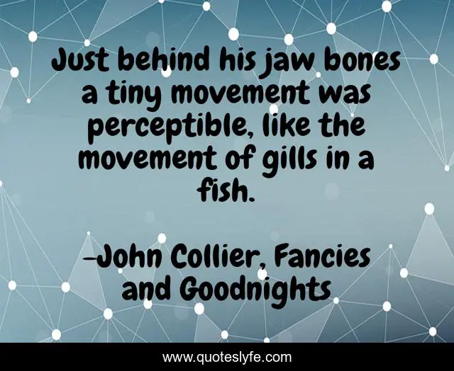 This page presents the quote "Just behind his jaw bones a tiny movement was perceptible, like the movement of gills in a fish.". Author of this quote is John Collier, Fancies and Goodnights. This quote is about horror, humor,.