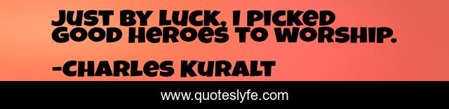 This page presents the quote "Just by luck, I picked good heroes to worship.". Author of this quote is Charles Kuralt. This quote is about heroes, good, luck,.