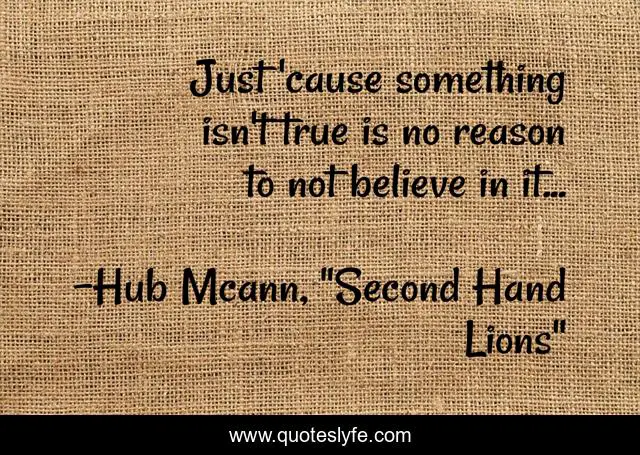 "Hub Mcann, "Second Hand Lions" Quotes." Quoteslyfe.com, 2025. Fri. 05 Dec. 2025. <https://www.quoteslyfe.com/quote/Just-cause-something-isn-t-true-is-111285>.