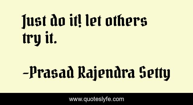 "Prasad Rajendra Setty Quotes." Quoteslyfe.com, 2025. Fri. 05 Dec. 2025. <https://www.quoteslyfe.com/quote/Just-do-it-let-others-try-it-172437>.
