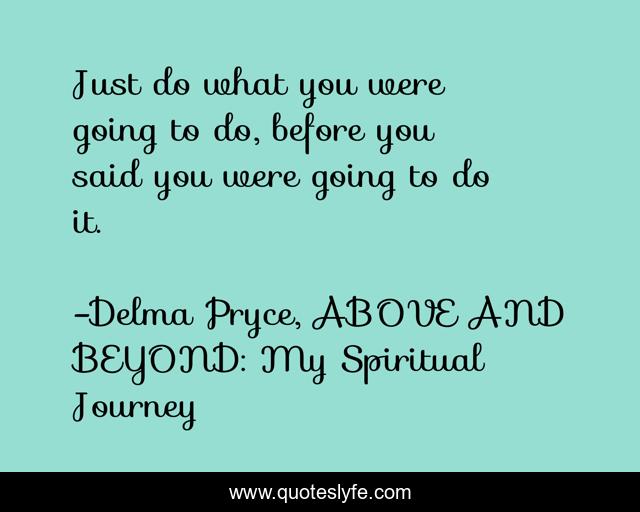 This page presents the quote "Just do what you were going to do, before you said you were going to do it.". Author of this quote is Delma Pryce, ABOVE AND BEYOND: My Spiritual Journey. This quote is about confidence, inspirational, positive, motivational, joyful-living, leadership, leadership-characteristics, life-skills, life-changing,.