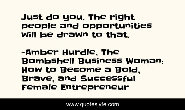 "Amber Hurdle, The Bombshell Business Woman: How to Become a Bold, Brave, and Successful Female Entrepreneur Quotes." Quoteslyfe.com, 2025. Tue. 09 Dec. 2025. <https://www.quoteslyfe.com/quote/Just-do-you-The-right-people-and-195508>.
