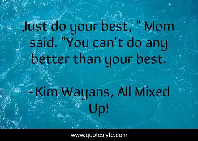 This page presents the quote "Just do your best, " Mom said. "You can't do any better than your best.". Author of this quote is Kim Wayans, All Mixed Up!. This quote is about amy-hodgepodge, perseverance, kevin-knotts, kim-wayans,.