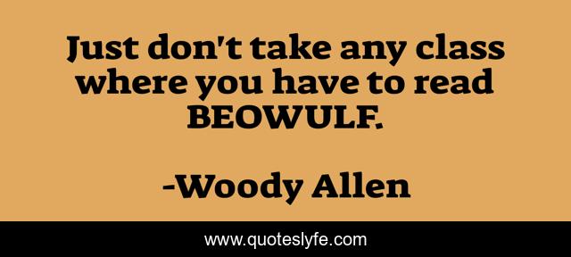 This page presents the quote "Just don't take any class where you have to read BEOWULF.". Author of this quote is Woody Allen. This quote is about school, humor, beowulf,.