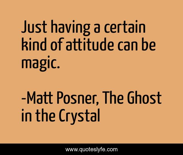 This page presents the quote "Just having a certain kind of attitude can be magic.". Author of this quote is Matt Posner, The Ghost in the Crystal. This quote is about magicians, magic,.