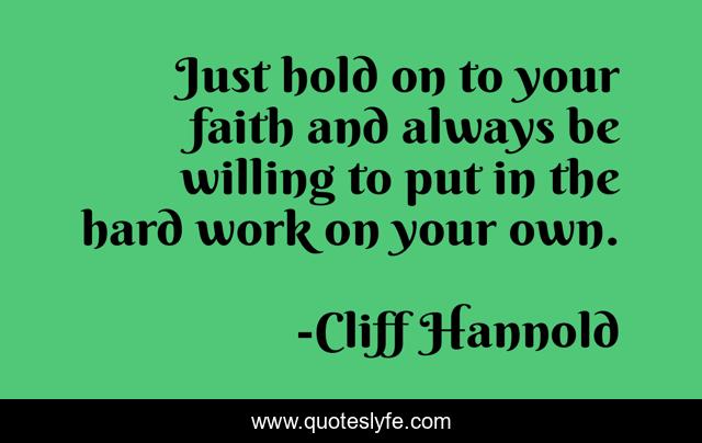 This page presents the quote "Just hold on to your faith and always be willing to put in the hard work on your own.". Author of this quote is Cliff Hannold. This quote is about faith, hard-work, success,.