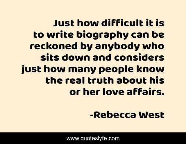 This page presents the quote "Just how difficult it is to write biography can be reckoned by anybody who sits down and considers just how many people know the real truth about his or her love affairs.". Author of this quote is Rebecca West. .