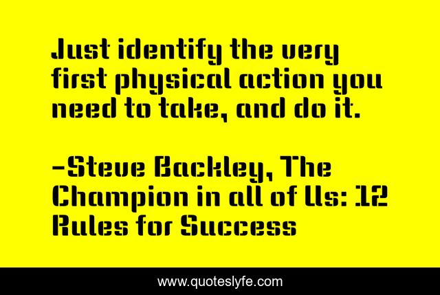 "Steve Backley, The Champion in all of Us: 12 Rules for Success Quotes." Quoteslyfe.com, 2025. Mon. 15 Dec. 2025. <https://www.quoteslyfe.com/quote/Just-identify-the-very-first-physical-action-32441>.