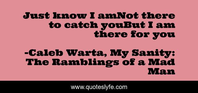 This page presents the quote "Just know I amNot there to catch youBut I am there for you". Author of this quote is Caleb Warta, My Sanity: The Ramblings of a Mad Man. This quote is about poem, life, death, humor, poetry, life-lessons,.