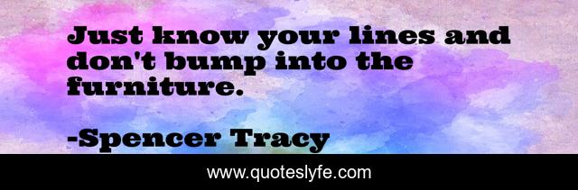 This page presents the quote "Just know your lines and don't bump into the furniture.". Author of this quote is Spencer Tracy. This quote is about life-philosophy, acting, writing,.