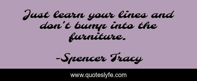 This page presents the quote "Just learn your lines and don't bump into the furniture.". Author of this quote is Spencer Tracy. .