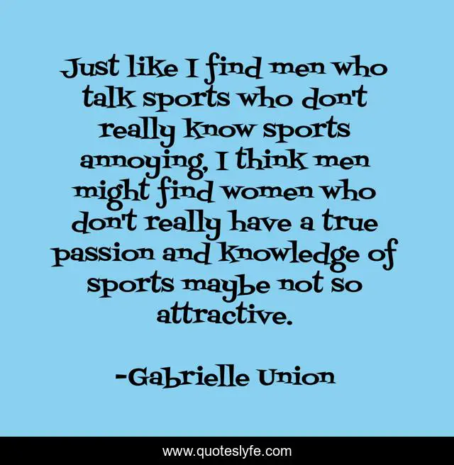 This page presents the quote "Just like I find men who talk sports who don't really know sports annoying, I think men might find women who don't really have a true passion and knowledge of sports maybe not so attractive.". Author of this quote is Gabrielle Union. This quote is about passion, knowledge, women,.