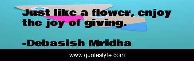 This page presents the quote "Just like a flower, enjoy the joy of giving.". Author of this quote is Debasish Mridha. This quote is about inspirational, philosophy, debasish-mridha, quotes, joy-of-giving, debasish-mridha-md, just-like-a-flower, enjoy-the-joy-of-giving, enthusiasm,.