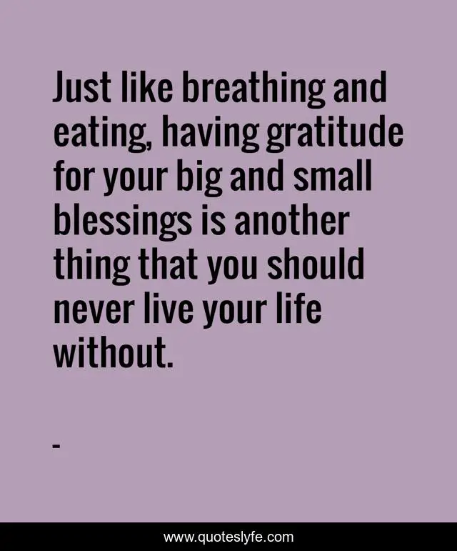 This page presents the quote "Just like breathing and eating, having gratitude for your big and small blessings is another thing that you should never live your life without.". Author of this quote is . This quote is about living-your-life-with-gratitude, being-thankful, edmond-mbiaka, big, blessing, blessings, small, having-gratitude,.