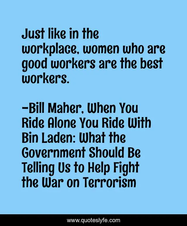 "Bill Maher, When You Ride Alone You Ride With Bin Laden: What the Government Should Be Telling Us to Help Fight the War on Terrorism Quotes." Quoteslyfe.com, 2025. Tue. 09 Dec. 2025. <https://www.quoteslyfe.com/quote/Just-like-in-the-workplace-women-who-103012>.