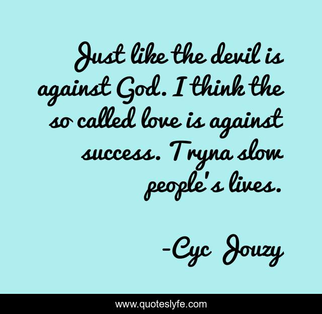 This page presents the quote "Just like the devil is against God. I think the so called love is against success. Tryna slow people's lives.". Author of this quote is Cyc Jouzy. This quote is about devil, love, evil, lust, sadness, happiness, affection,.